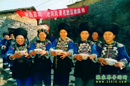 三、訪(fǎng)苗寨:穿越神工鬼斧的天然石洞,進(jìn)入老洞苗寨。鑼鼓喧天,笙歌陣陣,熱情的村民唱起了祝酒歌。品迎客酒,吃農(nóng)家飯,參觀(guān)列入歷史文化名村的古老獨(dú)特的石頭風(fēng)格建筑,觀(guān)看苗寨為您安排的互動(dòng)節(jié)目。下午四點(diǎn)乘老洞專(zhuān)車(chē)返回鳳凰古城,開(kāi)始新的愉快旅程。