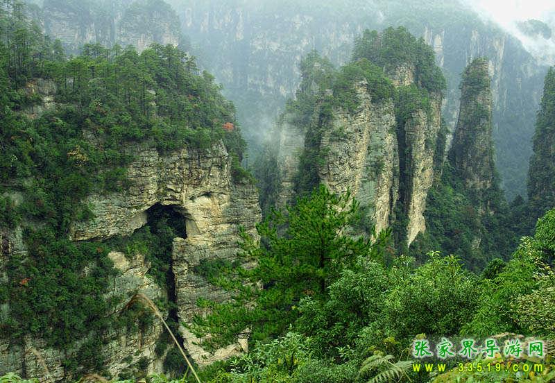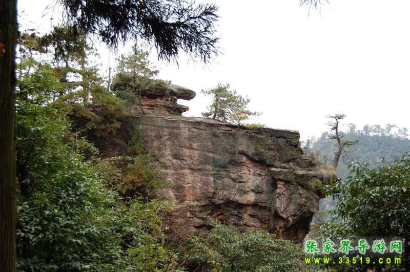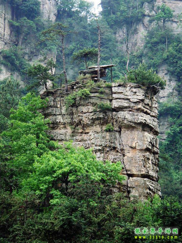這座拔地而起高300多米的巨大山峰,四面絕壁,頂部面積約4公頃,上面長(zhǎng)著黑黝黝一大片原始森林。20世紀(jì)70年代,曾有林場(chǎng)工人試圖爬上去考察,但因下雨石滑,無(wú)功而返。借助望遠(yuǎn)鏡,可以清楚地看到上面生長(zhǎng)的武陵松——說(shuō)起武陵松(又名巖松),可能沒(méi)有黃山松那么出名,但其特色卻絲毫不遜于黃山松,堪稱(chēng)張家界一絕。有人說(shuō):“桂林醉人是漓江清,峨眉風(fēng)流是金頂云,華山險(xiǎn)在倚天看,廬山美在泉中聽(tīng),不及湘西武陵源,數(shù)千奇峰纏綠云,石上長(zhǎng)森林。”“石上長(zhǎng)森林”說(shuō)的就是武陵松。她“千年長(zhǎng)不大,萬(wàn)年長(zhǎng)不老”,長(zhǎng)在絕頂之上或絕壁之中,不論風(fēng)吹雨打,嚴(yán)寒酷署,總是精神煥發(fā),一看見(jiàn)這瘦小而蒼勁的武陵松,就不由讓人頓生對(duì)生命的敬意。