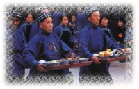 指著圓符,不久,蒙面者便神魂入定;似有神附體,慢慢地全身抖動起來,手舞足蹈,這就是已“進入陰間”。據(jù)傳過陰之人,雖蒙頭蓋面,也能辨別方向,隨法師的指使行事,陰間之事能有問必答,人們所要了解之事,也都從他們那里得到答復(fù),并可以探求禳解之法。法師用法術(shù)指使他們?nèi)プ龈鳂邮虑?。到一定時間,法師用咒語報他們招回,他們在法師的指示下,陸續(xù)返回陽世清醒過來。若有個別不能返回,法師則加倍對他們施法,用刀指向他,并念咒畫符,強令返回。過陰之人蘇醒后,法師揭開頭蓋,這時個個面色慘白,目光遲鈍,如害一場大病。法師再施以復(fù)原之術(shù),使之慢慢復(fù)原。他們復(fù)原后,完全忘記陰間的事情。