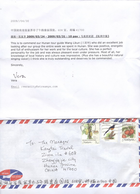 本公司導(dǎo)游,“王莉坤”由于帶團(tuán)期間出色的講解能力和高尚的人格魅力,贏得了游客們的高度評(píng)價(jià)。特發(fā)表?yè)P(yáng)信如下: