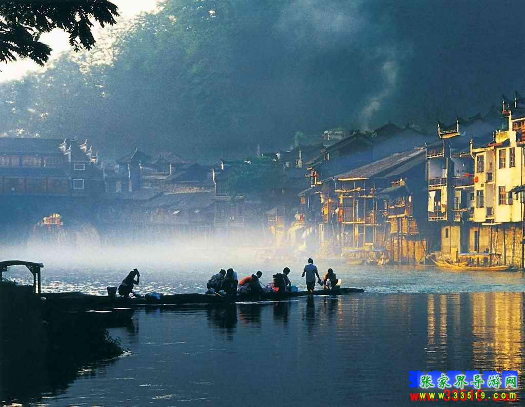 還有那鳳凰人在江邊用木板洗衣服時的情形也是難忘的。小住幾天,都會發(fā)現(xiàn)從一早到一晚都有當(dāng)?shù)氐木用裨阢吷舷匆路?,他們?nèi)巳硕寄靡豢焯刂颇景?,用來敲打衣服,特別在早上八、九點的時候,江兩岸的邊上、木橋的兩邊橋墩下,都蹲滿許多的人,當(dāng)然婦女、老人居多,在那“啪啪”的洗衣服,此起彼伏,甚有節(jié)奏。時而有游人用照相機對其拍照,可他們似乎也習(xí)以為常了,毫不理會,特別在傍晚還會有脫得精光的小孩在岸邊的洗衣人周圍玩水,奇怪的是,他們并不害羞,也不害怕游人的鏡頭和目光,我想大城市里的孩子就少了這份的無機心的單純了。在這里生活無疑自然舒適淳樸的,我想他們的生活習(xí)慣從來就是如此的,沒有因我們游客的到來而有太大該變。