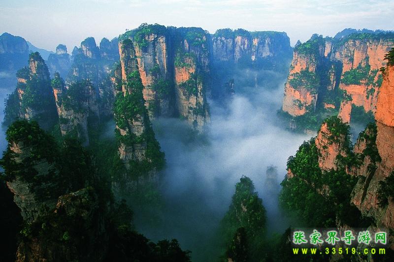 第二天早上,我們參觀了袁家界的風(fēng)景,其中最有名的當(dāng)然數(shù)天下第一橋,這是由兩座巖石山的山頂自然生長(zhǎng)在一起,非人所能為也。天下第一橋的稱號(hào)當(dāng)之無愧啊。當(dāng)然在袁家界,后花園也是不能不看的。張家界號(hào)稱“峰三千,水八百”,在這里你就能明顯的感覺到這句話的前半句是那么的實(shí)在??赐?a class="insidelink" href="http://www.dmpagroup.com/" title="張家界">張家界的核心袁家界,我們乘車到了天子山(張家界景區(qū)內(nèi)的最高的地方)。玩了賀龍公園、御筆峰、仙女散花、西海、石船出海、仙人橋、天子廟、十里畫廊、一步難行。不巧的是,那天山上下了一點(diǎn)陣雨,雨后一條彩虹掛在天上,更重要的是山上起了一點(diǎn)霧,使整座山都籠罩在霧中,若隱若現(xiàn),看上去就象是在云海中,好象老天特地配合我們似的,難得一見的西海等正好被我們趕上了。江導(dǎo)告訴我們,這樣的機(jī)會(huì)是很難得的,可能是張家界為了感謝我的再次到來,給了我一個(gè)特別的禮物吧。我大笑。晚上趕到昨天住的地方去住宿。不提。